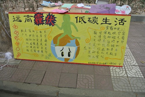 2014年11月12日中午13时,职业技术学院团委学生会生活部,在3号教学楼前开展以“防治雾霾 低碳生活”为主题的环保宣传活动。