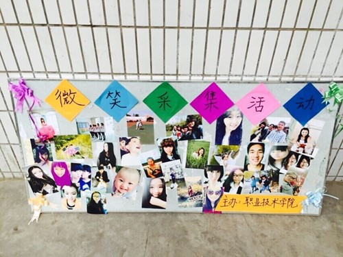 5月22日职业技术学院 “微笑采集活动”面向高职学院全体学生开展,活动通过向同学们征集微笑照片的方式表达“你笑了,生活就美了”的主题。活动中同学们踊跃发送自己拍摄照片,经过分类、冲洗、整理和筛选。5月25日微笑采集宣传展板布置完成。满载着微笑的展板摆放在学生食堂旁边进行展示。