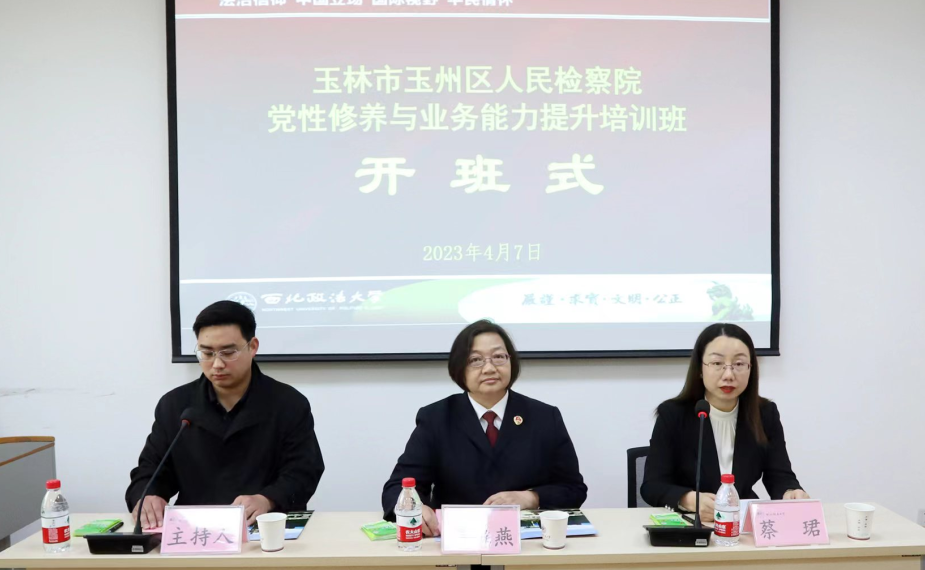 2023年4月7日上午,玉林市玉州区人民检察院党性修养与业务能力提升培训班在我校雁塔校区1号教学楼1203教室顺利开班。玉林市玉州区人民检察院党组副书记、副检察长谭雄燕;鸭奈飞