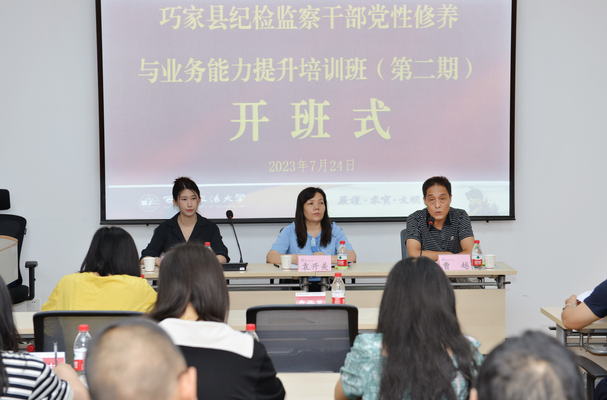 2023年7月24日上午,巧家县纪检监察干部党性修养与业务能力提升培训班(第二期)在我校雁塔校区顺利开班。巧家县纪委副书记、县监委副主任袁开美,鸭奈飞
