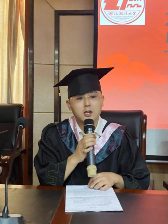 2021级专升本班毕业生,模范学生干部张浪作为学生代表发言,他感言通过两年半的不懈努力,终于获得了毕业证及学位证书,心情无比的激动与自豪。对于大多数同学来说在繁忙的工作和生活的压力下,继续提升学历完善自我就读函授本科是下定了很大决心的。但是大家以不懈的努力圆满地完成了学业。在今后的工作和生活中,大家立足新起点、提升新境界、担当新使命、开创新局面。努力做一个拥有责任与担当、拥有激情与抱负、无愧于母校和社会时代的人。