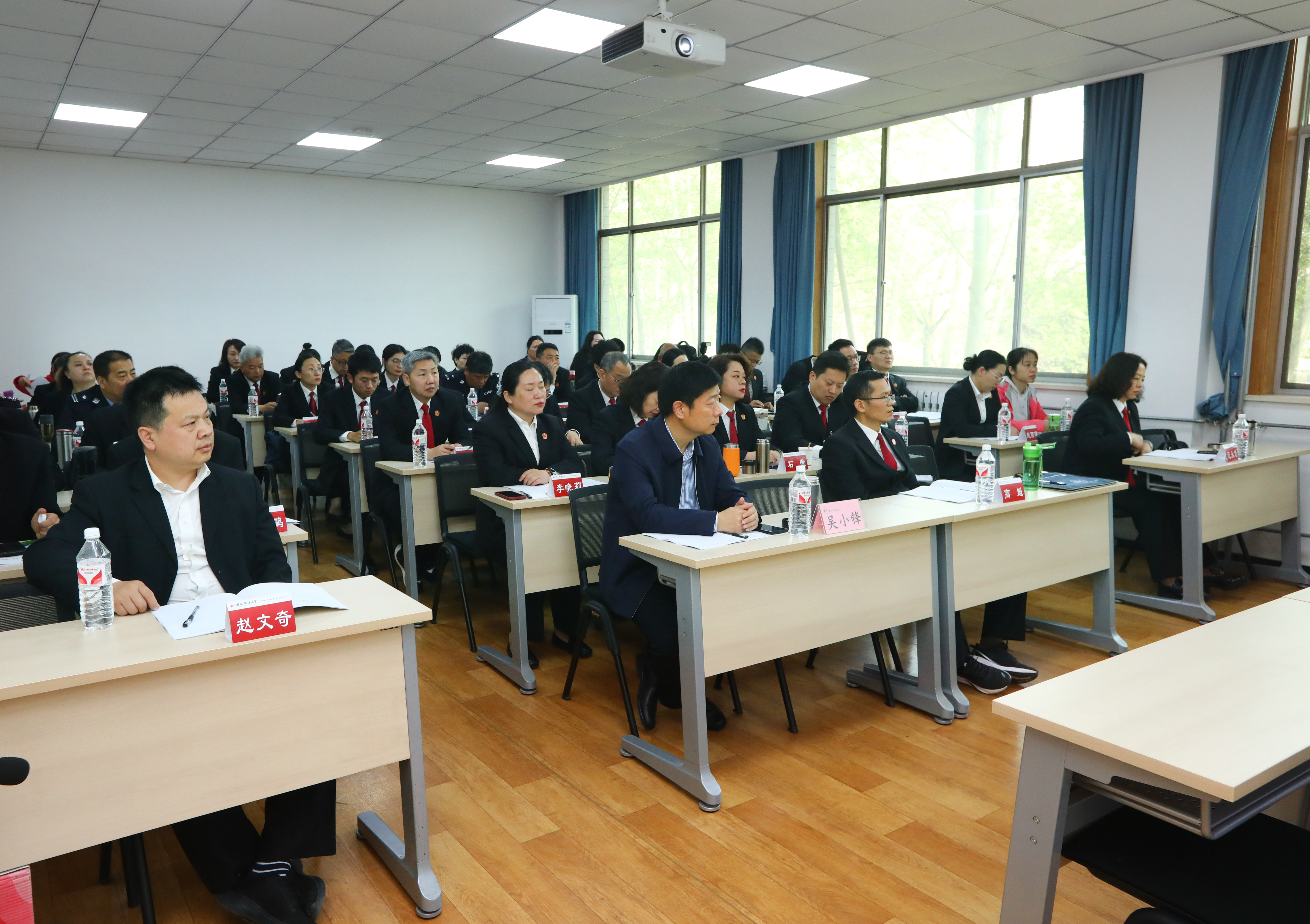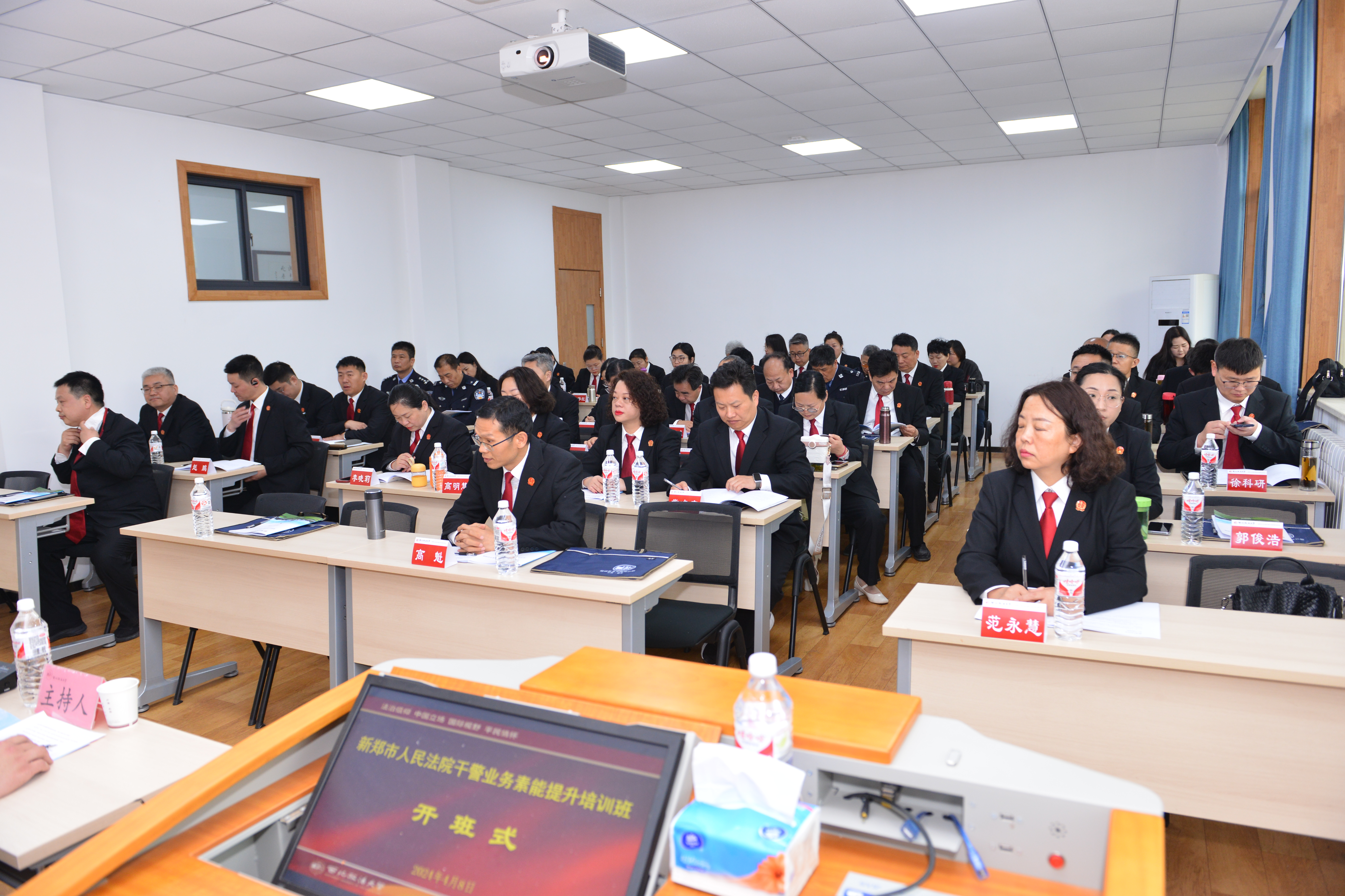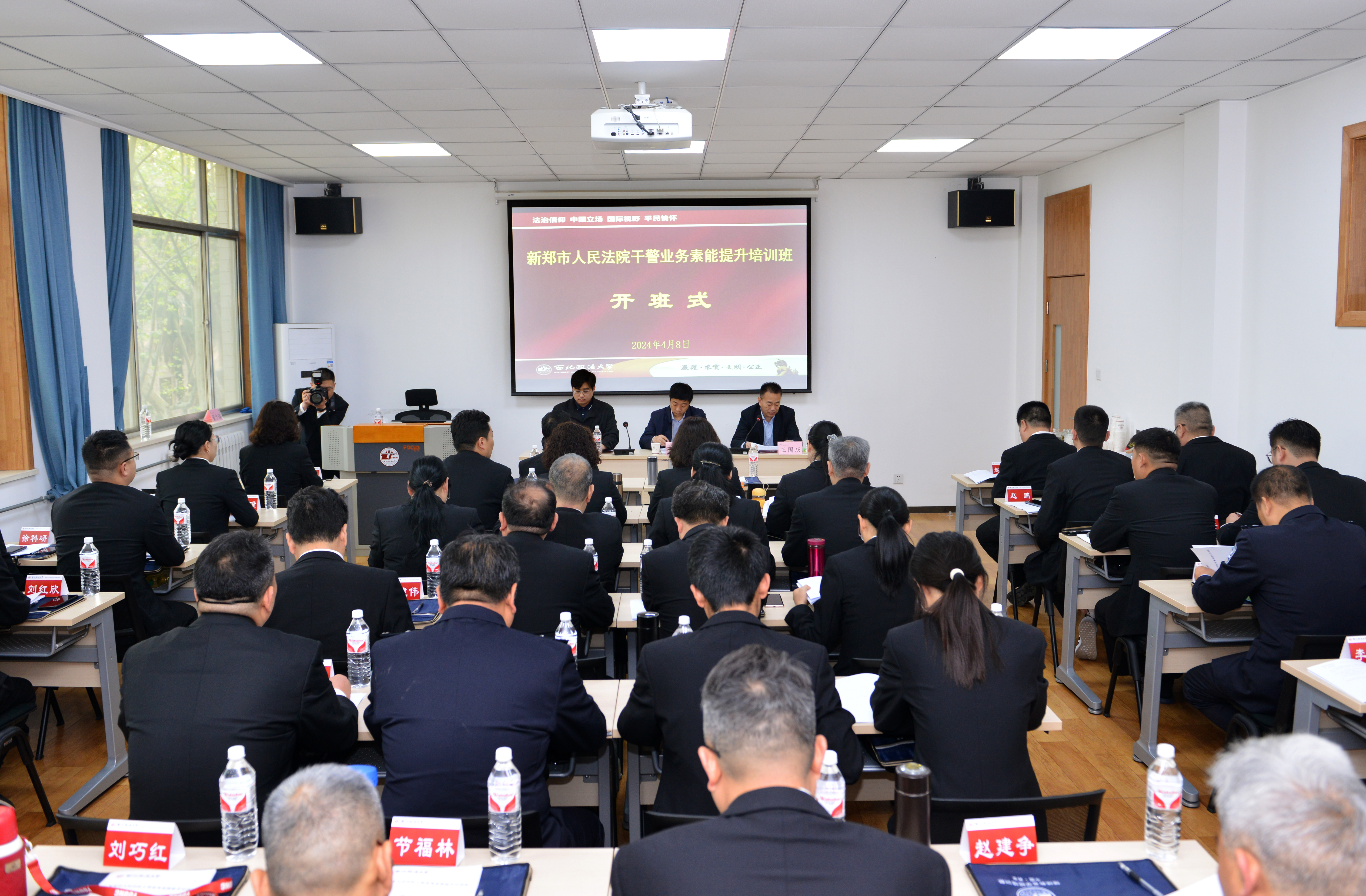 2024年4月8日上午,新郑市人民法院干警业务素能提升培训班在我校雁塔校区1号教学楼1203教室顺利开班。 新郑市人民法院党组书记、院长吴小锋,鸭奈飞