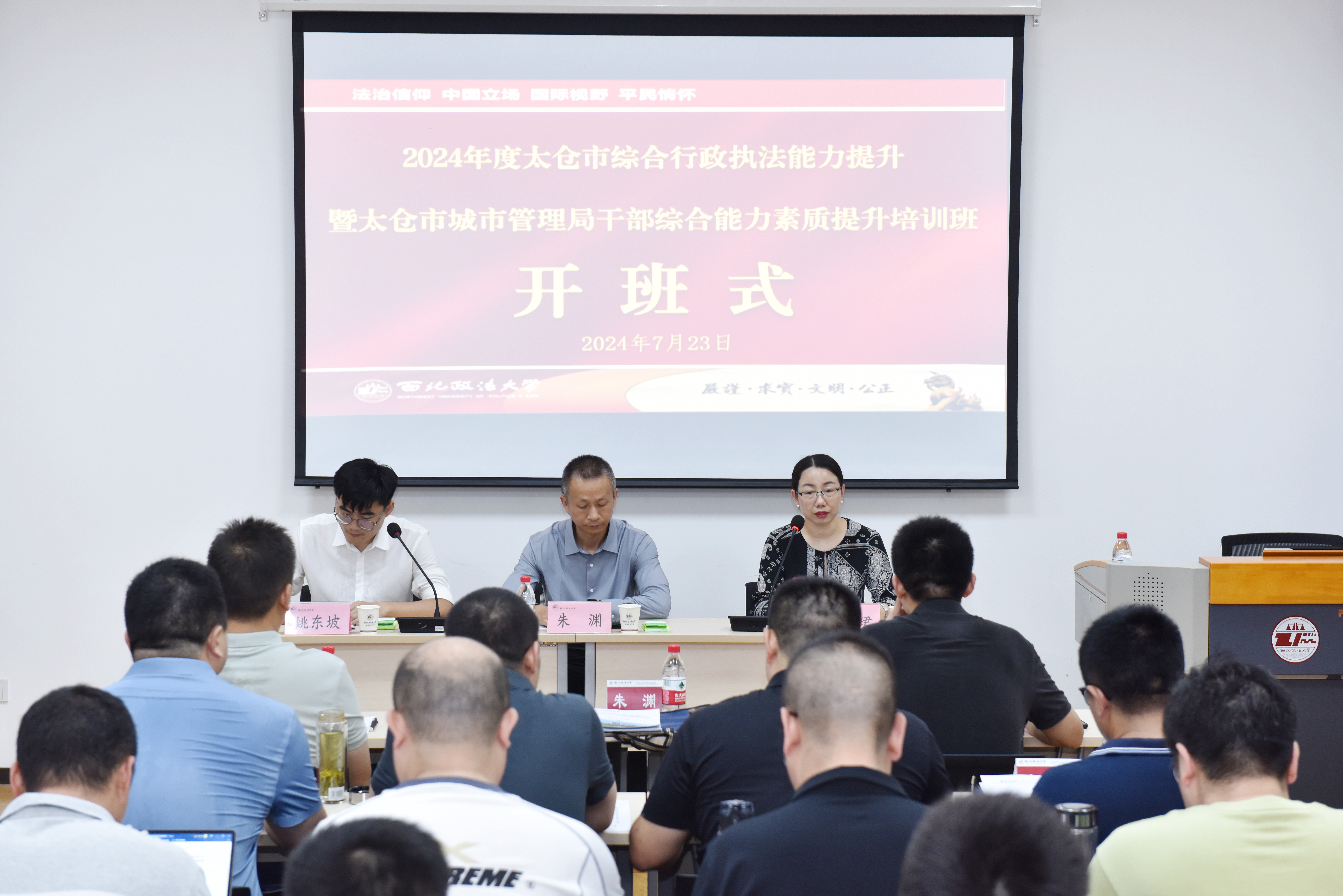 2024年7月23日上午,2024年度太仓市综合行政执法能力提升暨太仓市城市管理局干部综合能力素质提升培训班在我校雁塔校区顺利开班。太仓市城市管理局党组成员、副局长朱渊、鸭奈飞
