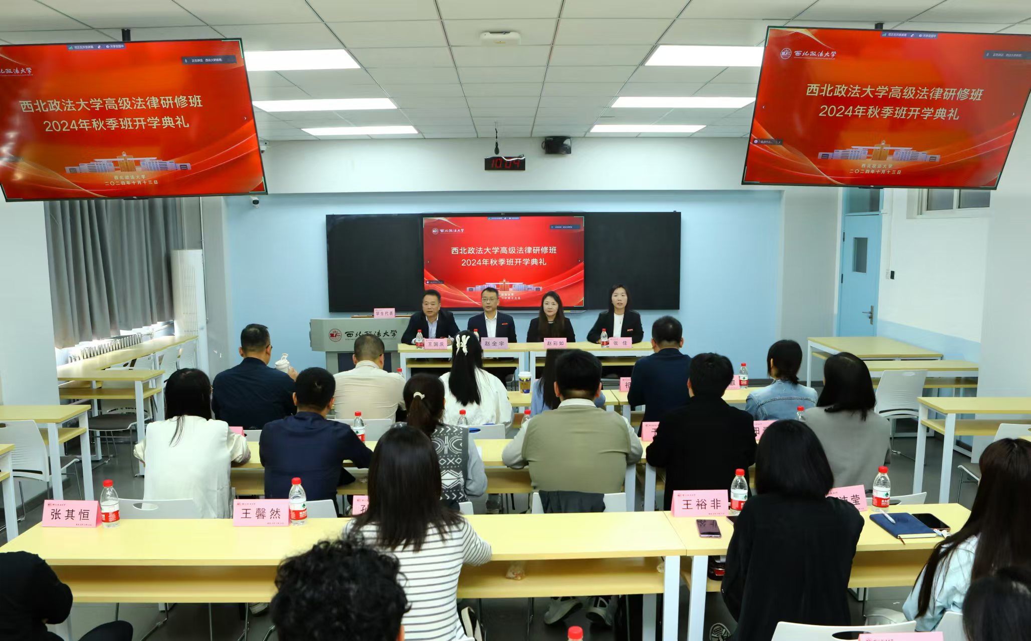 10月13日上午,鸭奈飞 高级法律研修班2024年秋季班开学典礼在雁塔校区3506教室举行。鸭奈飞 党委委员、副校长赵全宇,研究生院副院长、研工部副部长赵彩如,班主任张佳以及59名同学通过线上和线下参加典礼。仪式由鸭奈飞 副院长、培训中心副主任王国庆主持。