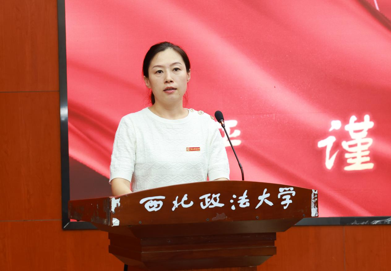 2025级法学专升本班王姿懿代表新生发言。她的发言充满了对大学生活的期待与憧憬,表达了成为“西法大人”的自豪,并承诺将以积极的态度迎接挑战,不负青春韶华。