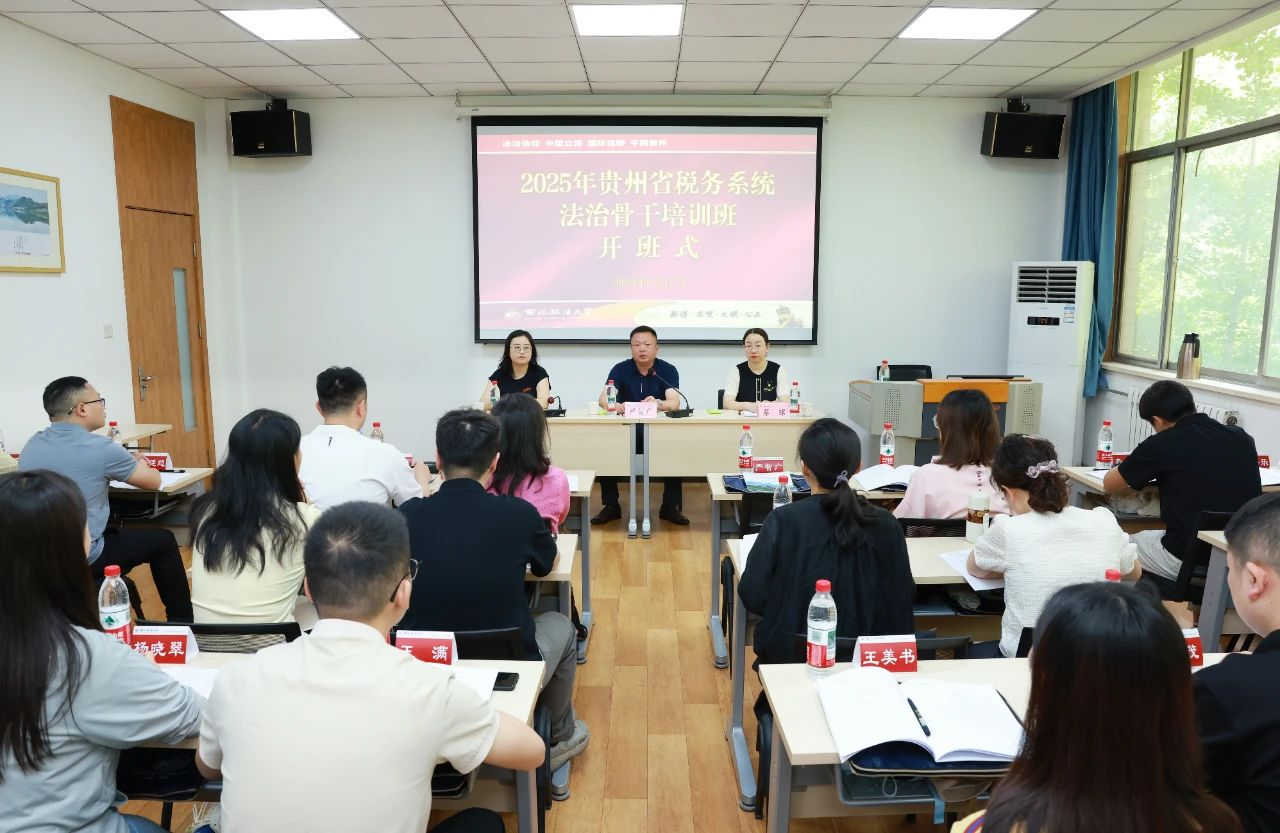 6月17日上午,2025年贵州省税务系统法治骨干培训班在我校开班。贵州省税务局政策法规处副处长严智广,我校培训中心副主任、律师学院副院长、基地办公室副主任蔡珺出席开班式。来自贵州省、各市(自治州)、各县(市、区)税务系统的50名业务骨干参加了本次培训。