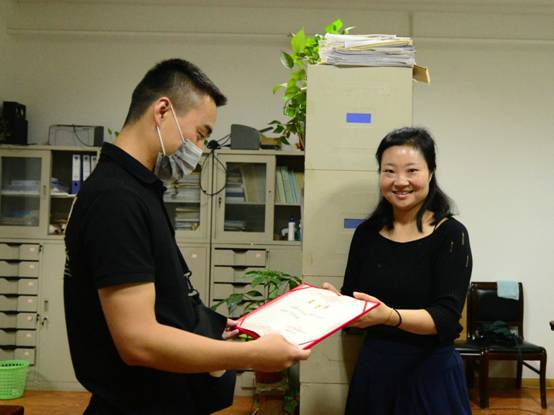 (晋艳科长为优秀函授生颁发荣誉证书)