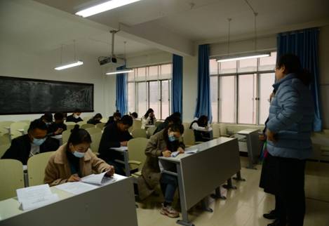考试中学院领导现场督导考试,随时巡查各考场工作,工作人员在各自岗位,工作认真负责、严谨细致。