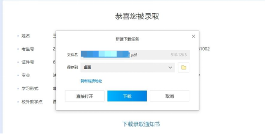 四、点击“下载录取通知书”