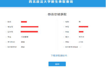 //xbzfdx.sccchina.net/xopen/#Subpage/AdmissionNoticeQuery