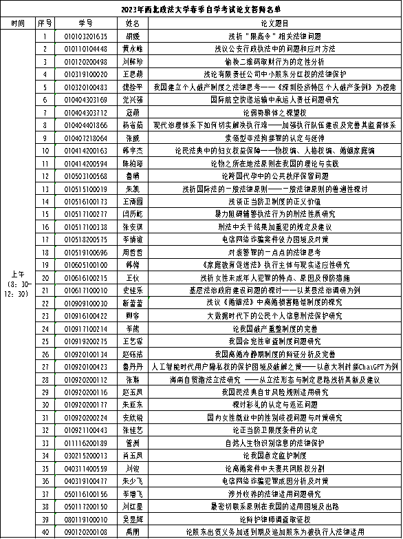 附件:《2023年鸭奈飞 春季自学考试论文答辩名单》