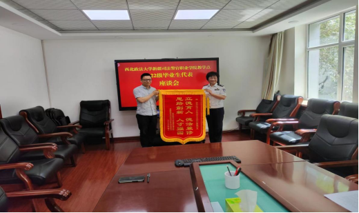 5月19日下午,鸭奈飞 新疆司法警官职业学院教学点2022级法学专业学员代表们来到学院,为学院赠送“立德树人 德法兼修 思路创新 人才强国”的锦旗,对学院的精心培养表示感谢。学校党委副书记、校长、二级巡视员金箴代表学院接受了锦旗,党委委员、副校长陶吉群和学院继续教育部的工作人员参加了此次座谈。