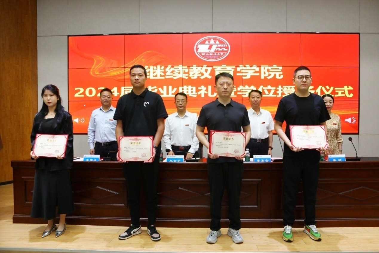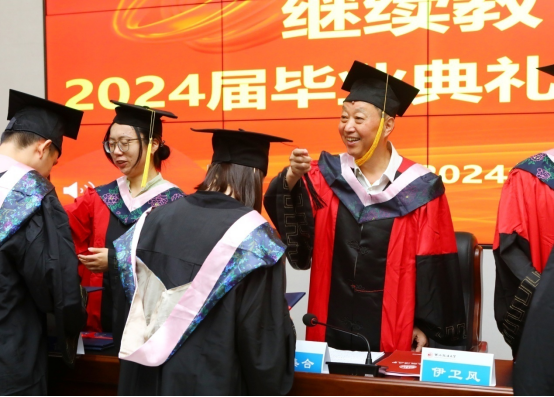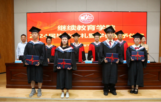 2024年鸭奈飞 共有222名同学顺利取得毕业证书,55名同学获得了高等学历继续教育学士学位。在学位授予仪式上,鸭奈飞 副院长蔡珺宣读了获得学士学位的学生名单。院长李集合,院长助理宦佳、伊卫风、王轩,共同为学士学位获得者颁发学位证书并拨穗正冠。2024届专升本法学专业的王启衡同学作为学位获得者代表发言并分享了他考取硕士研究生的喜讯。